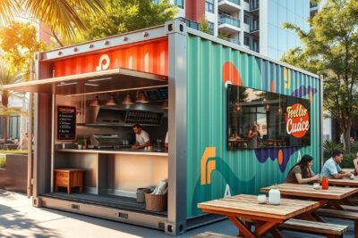 A Container Lanchonete é uma novidade no mundo da alimentação. Ela muda o jeito de comer nas cidades. Usando containers para fazer lanchonetes únicas, essa ideia está crescendo no Brasil. Ela traz conveniência e um toque de modernidade. Hoje, as pessoas buscam comidas práticas e que se ajustem a seus ritmos de vida. As Container Lanchonetes se sobressaem por serem flexíveis. Elas se encaixam em vários lugares e agradam a muitos tipos de clientes. Assim, elas renovam o conceito de lanchonete nos grandes centros. O que é uma Container Lanchonete? Uma Container Lanchonete é um lugar para comer que usa um contêiner marítimo. É inovador e une praticidade com criatividade. Assim, empreendedores conseguem oferecer uma lanchonete única em lugares movimentados. Usar um contêiner ajuda na facilidade de mudança e cria um espaço diferente para os consumidores. Definição e Conceito Definir uma Container Lanchonete é falar sobre transformar um container em uma área de vendas de comida. Esses contêineres podem ser montados e desmontados rapidamente. Isso dá flexibilidade para mudar de lugar. Esse jeito novo de pensar tem atraído atenção pelo fácil acesso e por alcançar diferentes tipos de pessoas. Vantagens de Utilizar Containers Optar por uma lanchonete de contêiner traz muitos benefícios. Primeiro, é mais barato que lugares comuns. Também, ajuda o meio ambiente pois reusa materiais, o que diminui o lixo. Essa iniciativa deixa o negócio interessante para quem se importa com o planeta. Tipos Comuns de Container Lanchonetes Vários tipos de containers podem ser usados para lanchonetes. Os mais vistos são: Cada modelo pode ser ajustado para o que o negócio precisa. Assim, dá para ter um cardápio diverso e uma experiência especial para quem frequenta. Benefícios de uma Container Lanchonete…