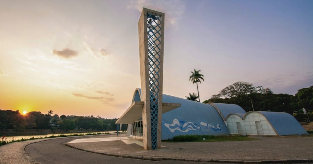 A Pampulha, um dos conjuntos arquitetônicos mais icônicos de Niemeyer, é um exemplo perfeito de como o modernismo foi incorporado à identidade urbana de Belo Horizonte.