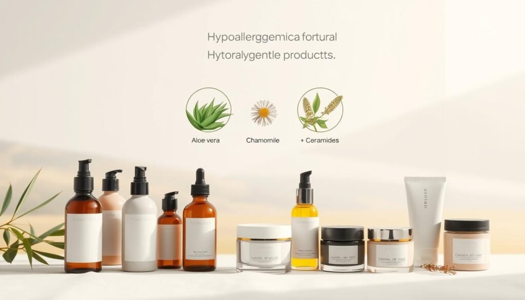 Escolher produtos hipoalergênicos é essencial para quem tem pele sensível. Eles garantem uma rotina de cuidados adequada. A limpeza é o primeiro passo. Deve-se usar um limpador suave, sem fragrâncias que irritam, para tirar impurezas sem danificar a pele.